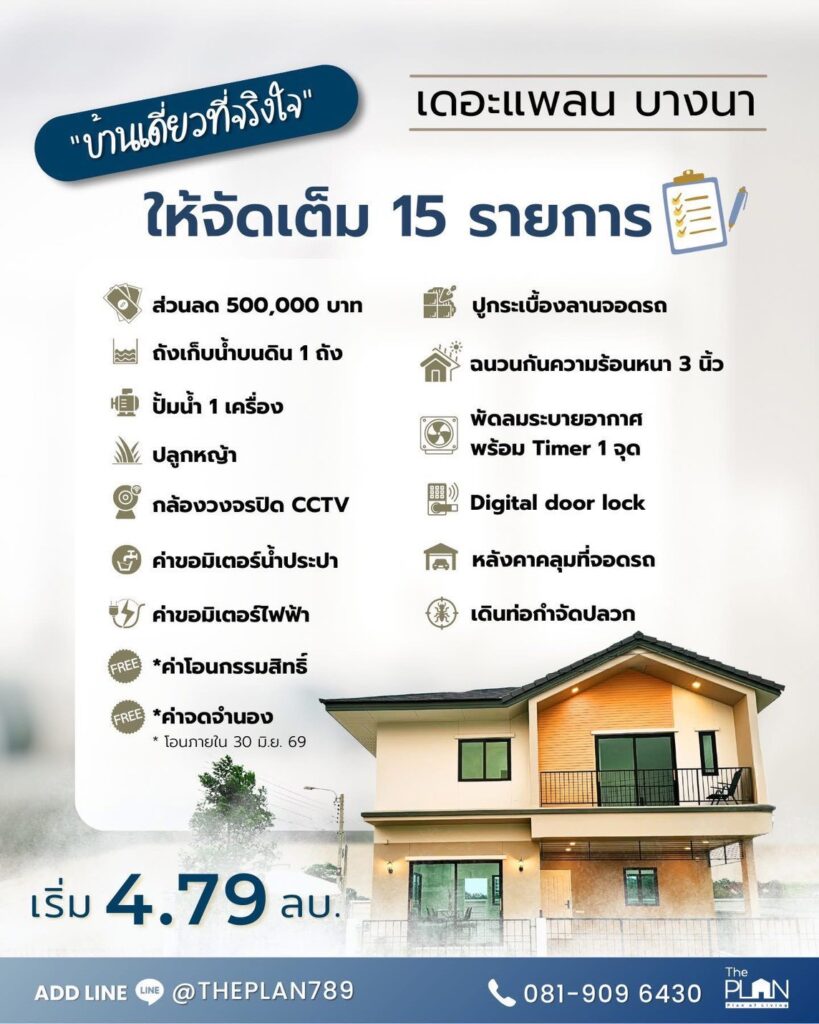บ้านเดี่ยว 2 ชั้น (ใหม่) โครงการ The Plan @บางนา (เอแบค) พร้อมสวน เงียบสงบ ใกล้สนามบินสุวรรณภูมิ