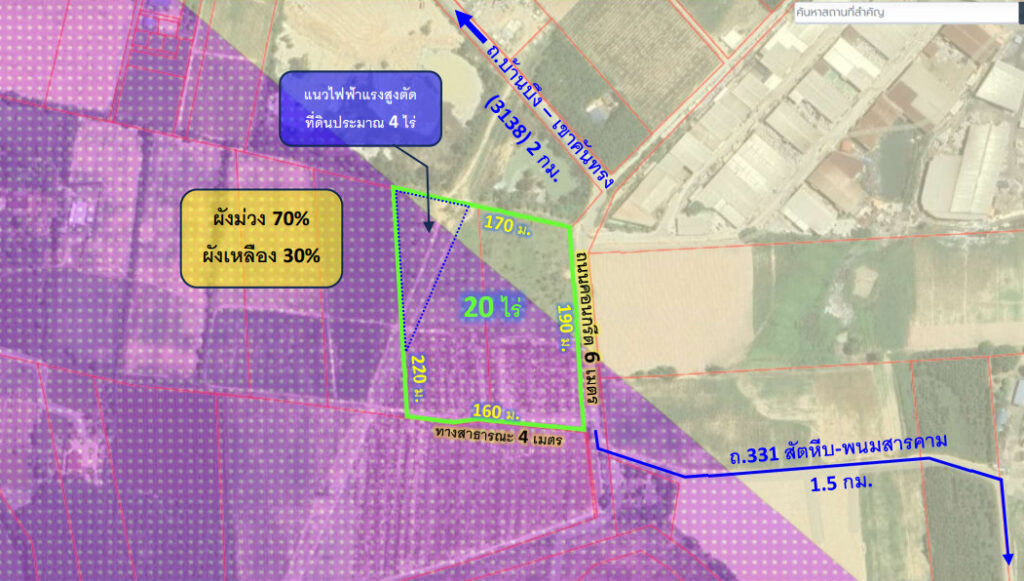ผังการใช้ประโยชน์ที่ดิน : ผังสีม่วงจุดสีขาว (ประกาศผังเมืองเขตพัฒนาพิเศษภาคตะวันออก ECC ปี 2562) ที่ดินประเภทเขตส่งเสริมเศรษฐกิจพิเศษ เพื่อกิจการอุตสาหกรรม พาณิชยกรรม การอยู่อาศัย เกษตรกรรม สถาบันราชการ การสาธารณูปโภค สาธารณูปการ กิจการวิจัยและพัฒนา และกิจการอื่นๆ